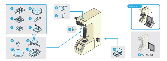 产品介绍Matsuzawa进口金属维氏硬度仪VMT-X Matsuzawa于1995年起开始制造硬度计,总部位于日本的秋田,公司主要生产供应维氏硬度计和洛氏硬度计,经过多年的创新改革,matsuzawa在硬度计的设计和开发方面已取得重要成绩,当前可以提供的硬度计主要是洛氏、和维氏,可测试的样品为丰富,橡胶,塑料,钢板,合金金属等,特别是在维氏硬度测试领域。 VMT-X维氏硬度计是日本MATSUZAWA公司研制的一款高精度、高可靠性维氏硬度计,砝码加载,稳定性好,适合实验室用。其模块化结构,简单易用,可增加自动XY工作台,自动Z轴升降机构,工业相机及系统软件等装置组成全自动显微硬度计。 特点: 1、最多可装4个物镜 2、彩色LCD触摸屏 3、全新功能菜单 4、高分辨率,0.01um 5、LED光源 极高分辨率0.01um 最多可装载4个物镜 LED高效光源 HV测量模式 HK测量模式 布氏测量模式 均值及差值测量模式 KC冲击韧性测量模式 圆弧修正模式 助理功能:根据硬度值和材料厚度为您自动计算试验荷重,避免错误测量现象 配置: 800HV30标准硬度块一个,维氏压头一个,电子测量显微镜一组,10倍物镜1个;20倍物镜1个,60mm平面底座1个;大V型底座一个,水平仪一个,5A保险丝2个,电源线1根,水平支脚4个,辅助工具一套,说明书一份,防尘罩一个,防倾覆支座一组2个 系统配置图